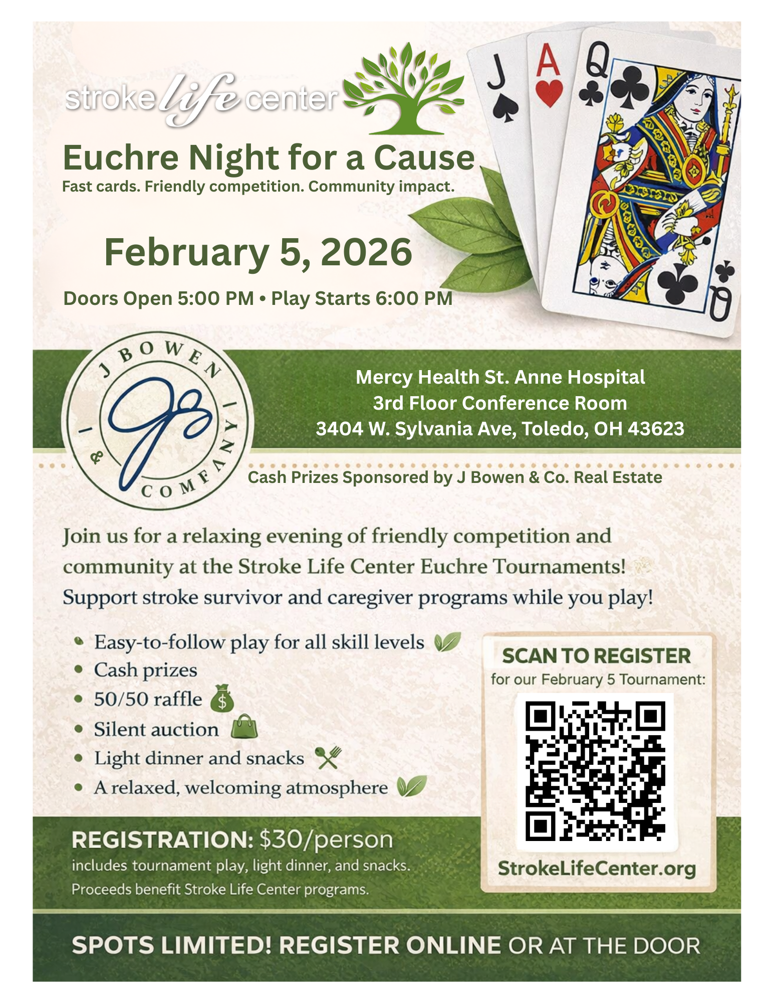 Ready for an evening of fast cards, friendly competition, and meaningful connection? Join the Stroke Life Center Euchre Tournament—where classic card play meets community impact.