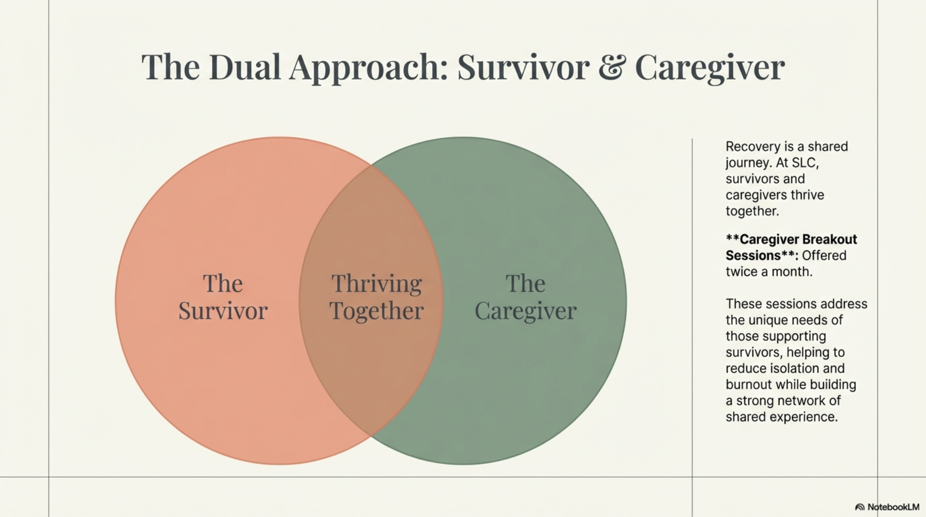 To better support the unique needs of caregivers a dedicated Caregiver Breakout Session is held during the regular weekly support group meeting on the second and fourth Wednesdays of each month.